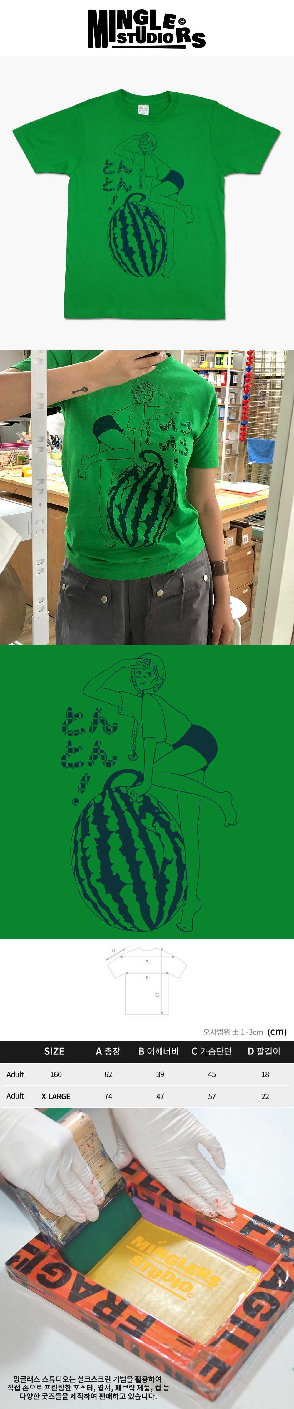 -모든 프린트는 수작업으로 진행되어 프린트의 상태가 모두 동일하지 않을 수 있습니다. 미세한 위치, 간격차이 혹은 약간의 번짐은 불량 사유가 아닙니다.